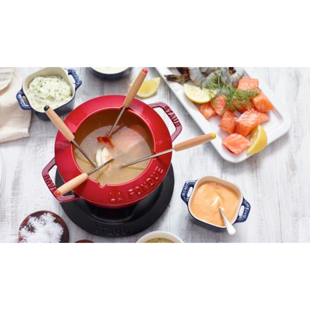 This STAUB cast iron fondue set allows you to cook delicious fondue or tempura either on the hob or at the table. Perfect for sharing!
