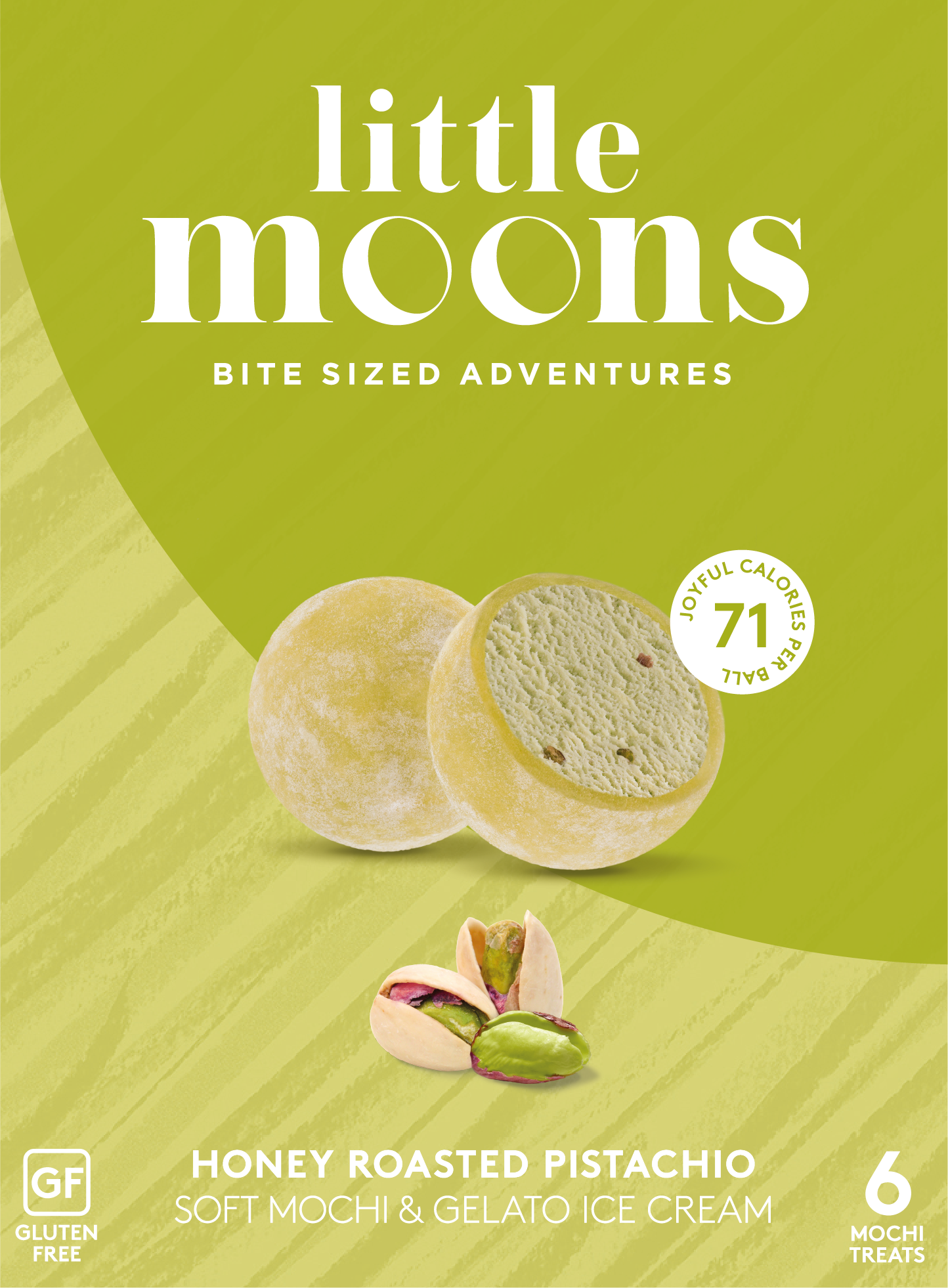 With a mouthful of creamy artisan gelato, lovingly wrapped in soft and delightfully delicate mochi dough, each bite of mochi serves up an exciting new flavour adventure. Discover the sweet nuttiness of pistachios roasted in honey and welcome a whole new world of flavour into your home.