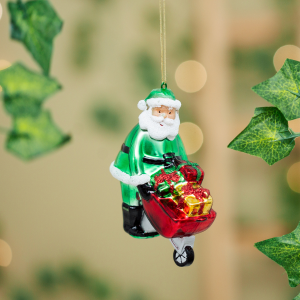 Santa With Wheelbarrow Shaped Bauble