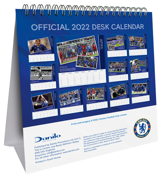 This Chelsea Official 2022 Desk Easel has a built-in stand which means the calendar can be used on any flat surface, making it ideal for a clutter-free home, office, or kitchen. This official desk calendar features a month-to-view layout and with an easy flip-top binding, making it simple to look at the coming months.