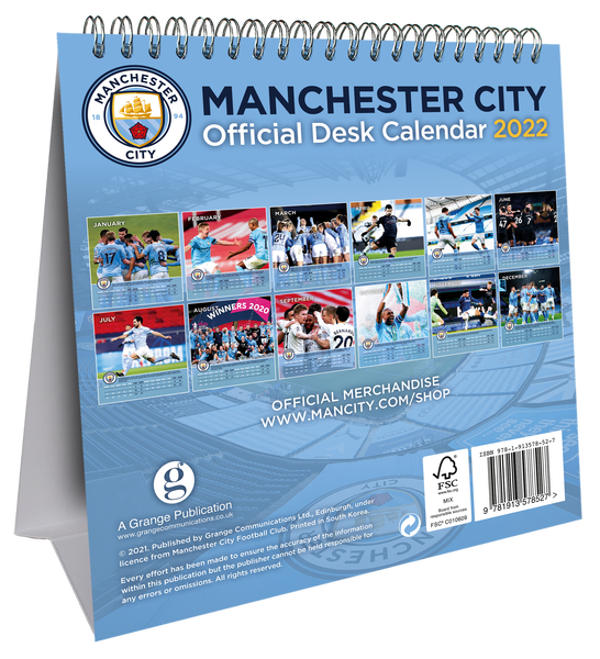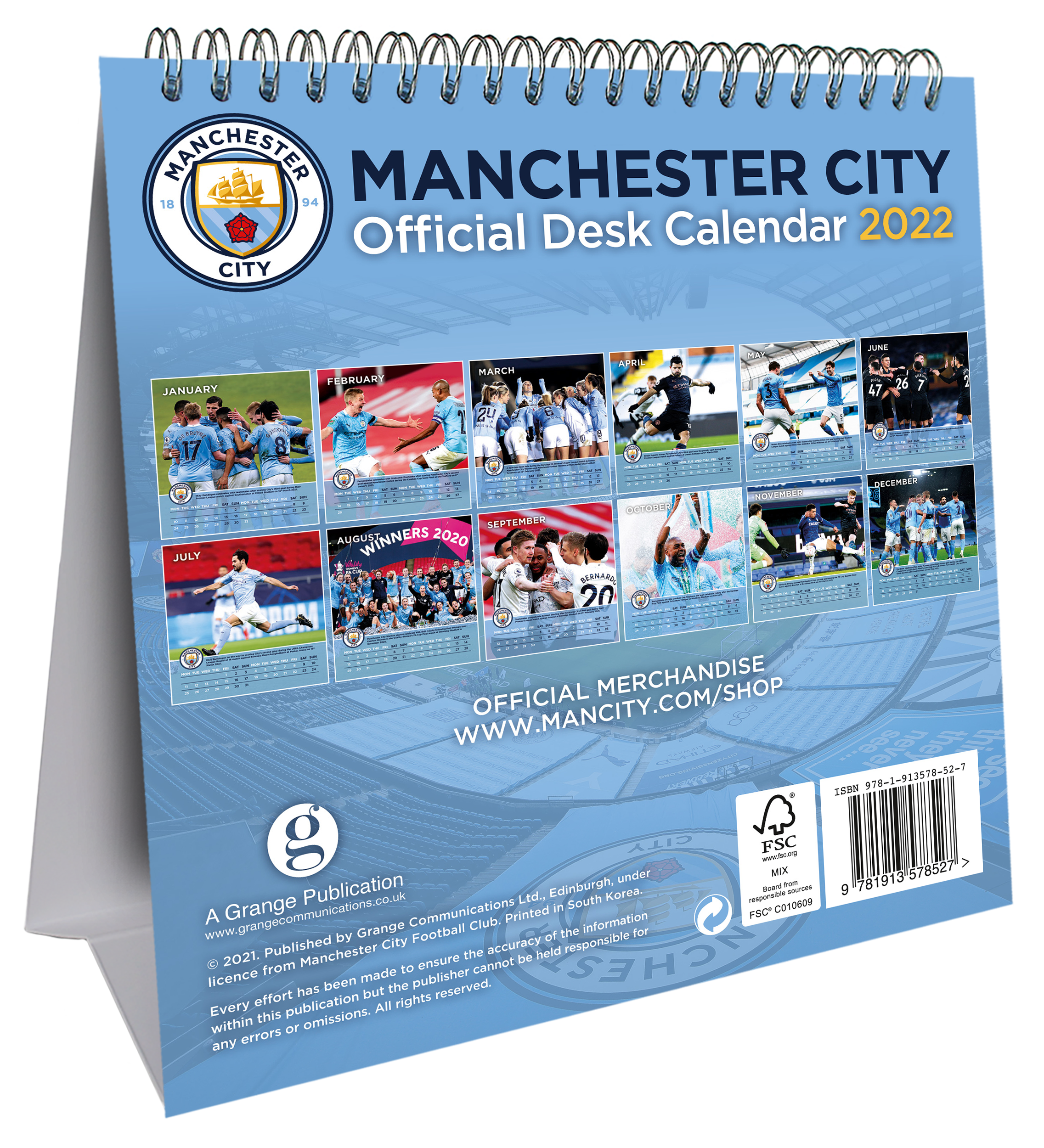 This Manchester City Official 2022 Desk Easel has a built-in stand which means the calendar can be used on any flat surface, making it ideal for a clutter-free home, office or kitchen. This official desk calendar features a month-to-view layout and with an easy flip-top binding, making it simple to look at the coming months.