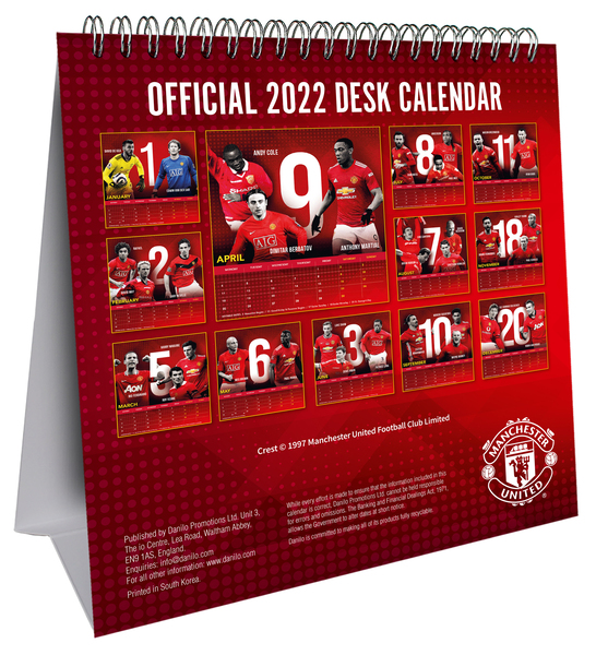 This Manchester United Official 2022 Desk Easel has a built-in stand which means the calendar can be used on any flat surface, making it ideal for a clutter-free home, office or kitchen. This official desk calendar features a month-to-view layout and with an easy flip-top binding, making it simple to look at the coming months.