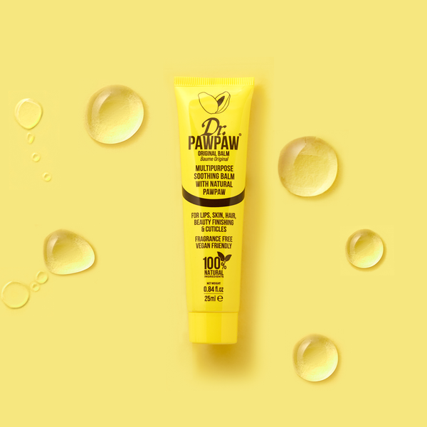 Dr.PAWPAW Original Lip Balm (the iconic yellow one!) Our multi-award-winning, 100% natural, multi-tasking balm is packed full of Pawpaw (papaya), Aloe Vera and Olive Oil. The Original Lip Balm can be used in a variety of ways on the lips, skin and hair; to hydrate lips, nourish dry cuticles and patches of skin or shape brows and tame flyaways. This nourishing multi-tasking formula leaves your hair, skin and lips feeling soft and soothed. Suitable for all skin types, including sensitive skin.