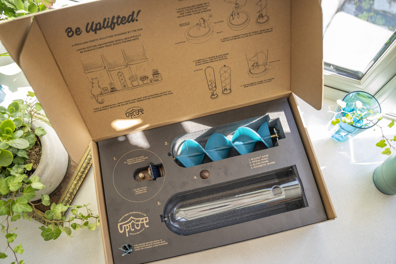 Uplift 2.0 is a stunning solar powered sculpture designed to sit on your window-sill and gently revolve. Good for the mind and the planet, this eco-friendly art is made from 100% recycled fishing nets sourced from the Cornish Hake Fisheries. Reminiscent of the ocean waves, its mesmerising motion will help you to relax and unwind, bringing a sense of peace and calm to your day. £10 from every website sale goes to mental health charity, Sea Sanctuary. Uplift 2.0 is designed and hand assembled by award-winning British Inventor, Tom Lawton and available from September 2020 from www.beuplifted.co.uk. **"Uplift is so hypnotic. I could watch it forever." - Jamie Oliver.** **“I love this. A happy dreamy solar sculpture.” - Derren Brown, Mentalist.** **"It's mesmerising, inspiring, uplifting and beautifully designed." - Michael Acton Smith, Co-Founder & CEO of Calm.**