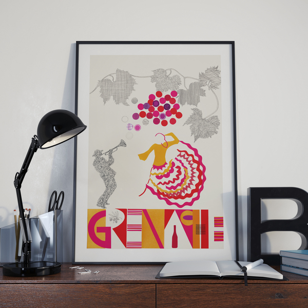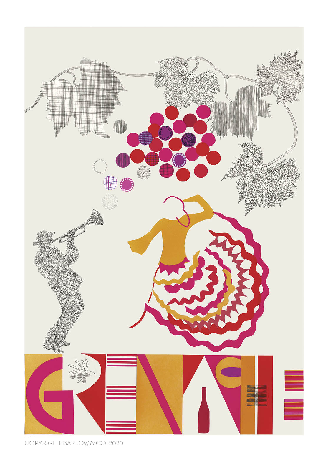 Grenache is like a gypsy making wild, flamboyant music wherever it travels. Perfect gift for wine lovers, cooks, lockdown wine converts, visual artwork collectors and the typically challenging men’s Christmas gift category. Printing is to art standard on archival paper using Ultrachrome inks for incredible depth of colour and longevity. Delivery between 2-5 days. Sizes and prices: A4 (210 x 297mm) £30, A3 (297 x 420mm) £50, A2 (420 x 594mm) £80, A1 (594 x 841mm) £140. All the prints are sold unframed, but we do offer a framing service. Prices are dependent on what the specification is, but to give an example, an A3 framed print would be an extra £50. Contact help@wineartshop.com for more info.