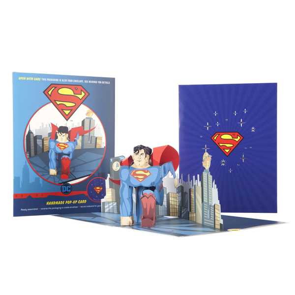A card fit for the SUPERHERO in your life! This unusual Superman Pop Up Card is the perfect 'all in one' card and gift for a DC fan. Designed to make a huge impact, it can be used for any occasion such as a birthday card for him or even as a Valentine's Day or Father's Day Card for a DC fan!