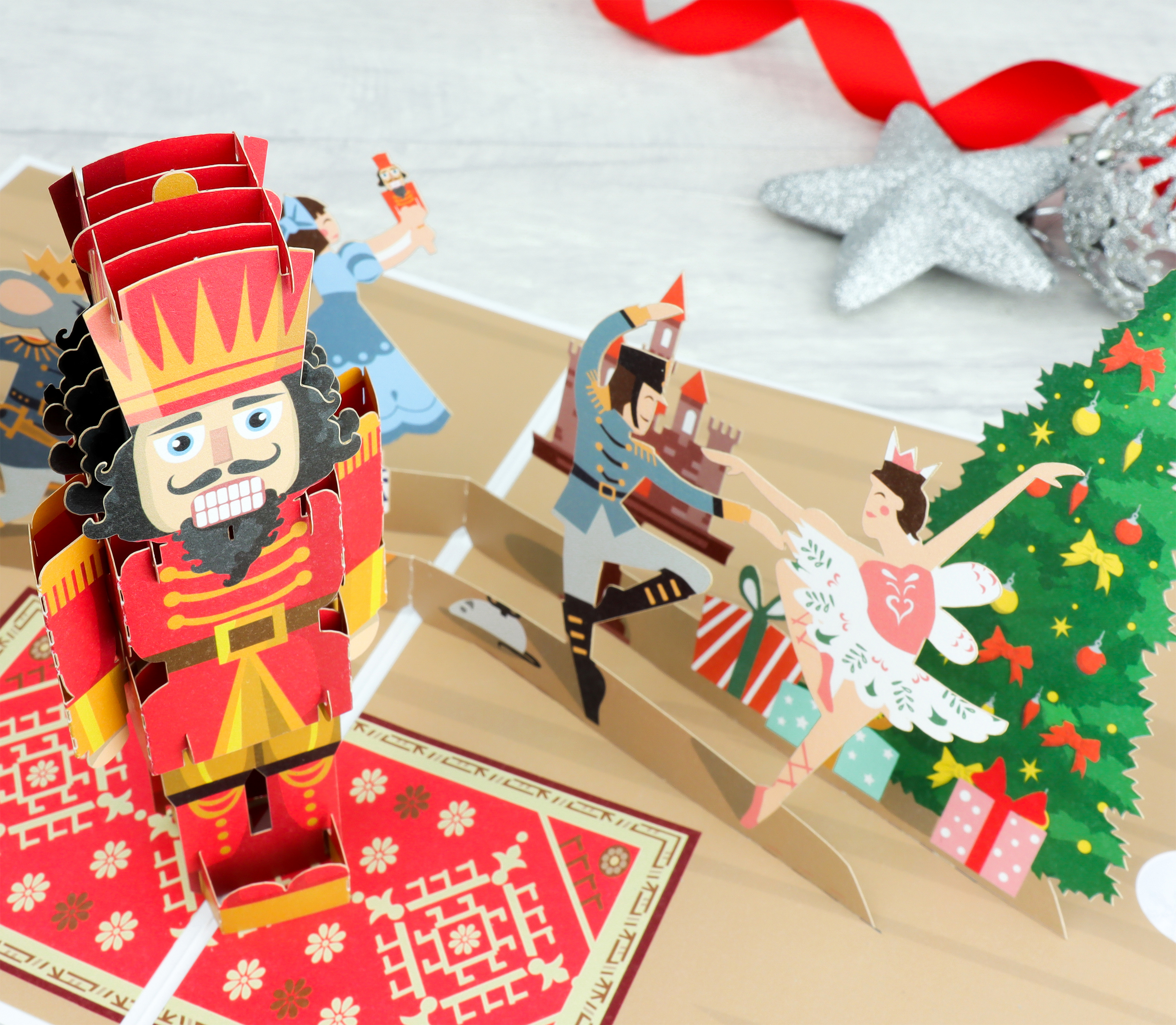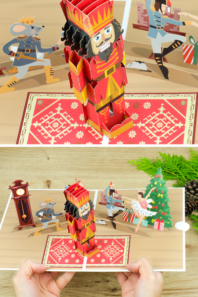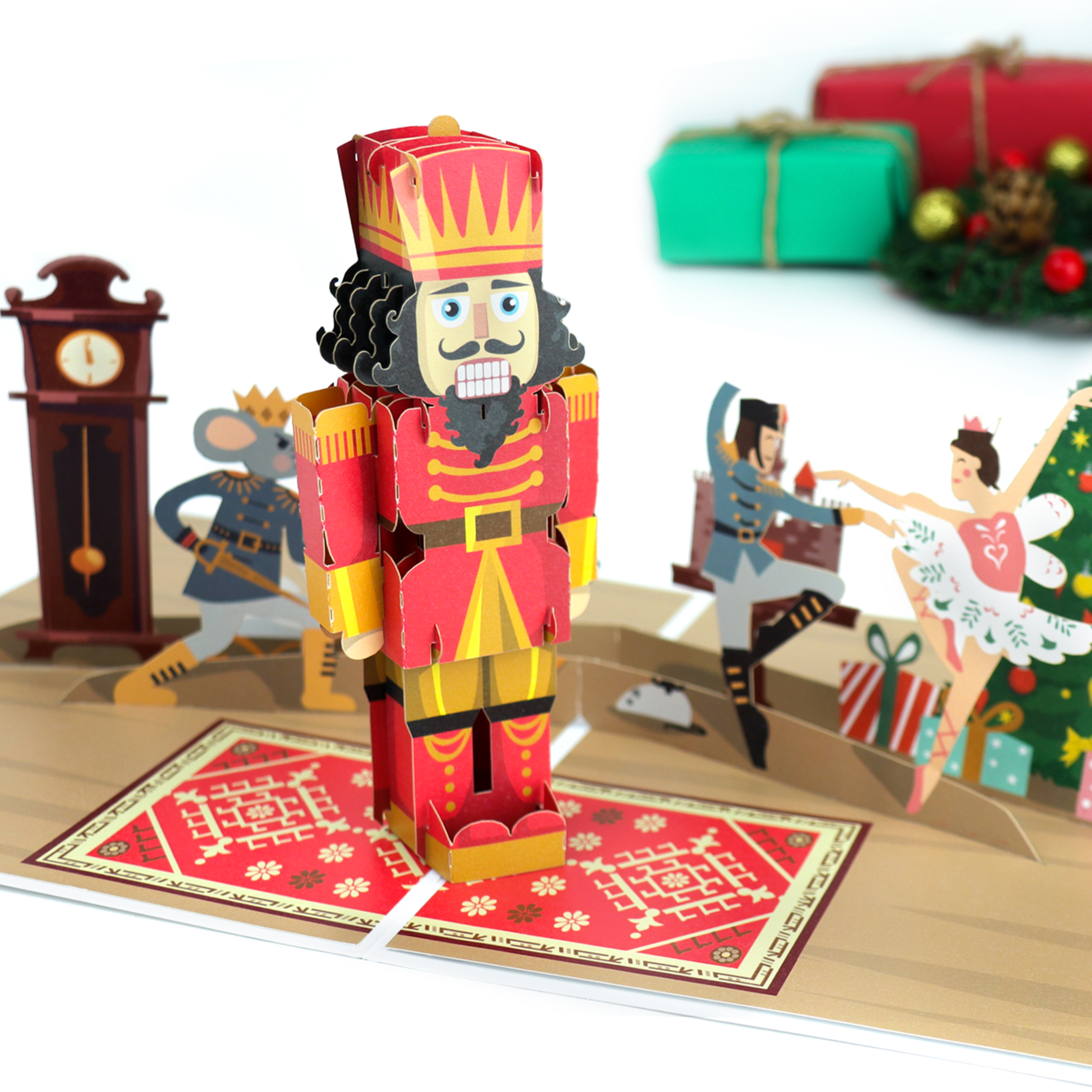 Inspired by our love of ballet especially during the Christmas season, our “Nutcracker” Pop Up Card brings goosebumps to anyone who is familiar with this famous production. This is a beautiful intricate Christmas Card to give to a loved one and bring a smile to their face!