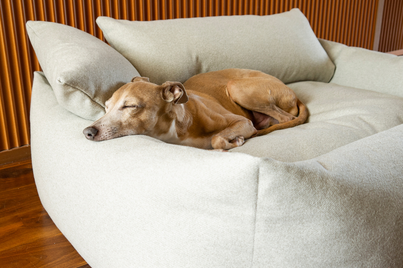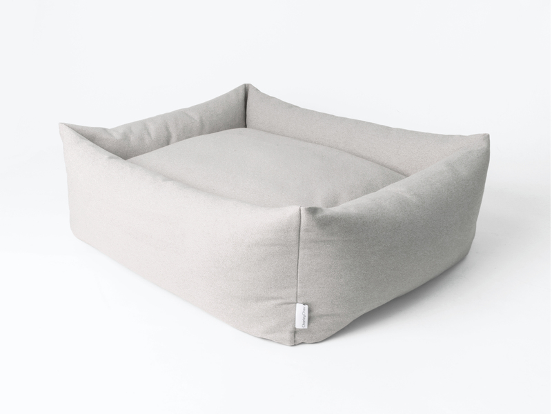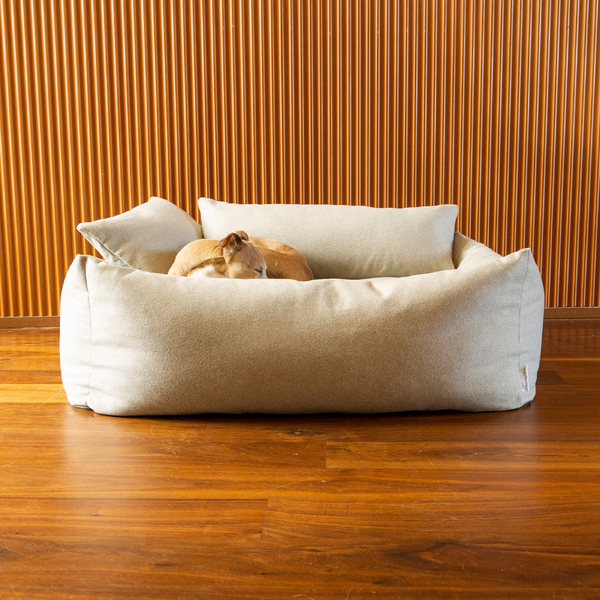 Over ten years of dog bedding expertise distilled into one classic design to make the perfect bolster bed. Designed with four ethically sourced duck-feather filled Bolster Inserts to create a cosy cocoon around a deep-filled luxury mattress - your dog can nestle into the sides, rest their chins on top, or squish and squash to heir heart's content and yet the bed will simply plump-up right back to shape. For extra support and oodles of style points, there's also the option to add Mini Bolster Pads to the Bliss Bolster Bed in a choice of colours and combinations. Made with Faroe fabric, a beautiful upholstery-quality fabric with the feel and warmth of woven wool but Faroe is tough enough for human sofas and armchairs. The Bliss Bolster Bed is fully machine washable and comes in a choice of five colours - Jade, Sienna, Lemongrass, Pebble (as shown) and Nimbus Grey. Available in sizes S, M & L.