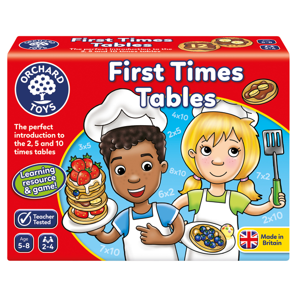 A fun introduction to understanding 2, 5 and 10 times tables. A learning resource to introduce young children to multiplication, it also gives parents the tools to help teach their child. Once children have become familiar with the concept of multiplication they can play the flippin’ fun pancake themed game to put their new skills to the test! Suitable for ages 5-8 years and available from Orchardtoys.com.