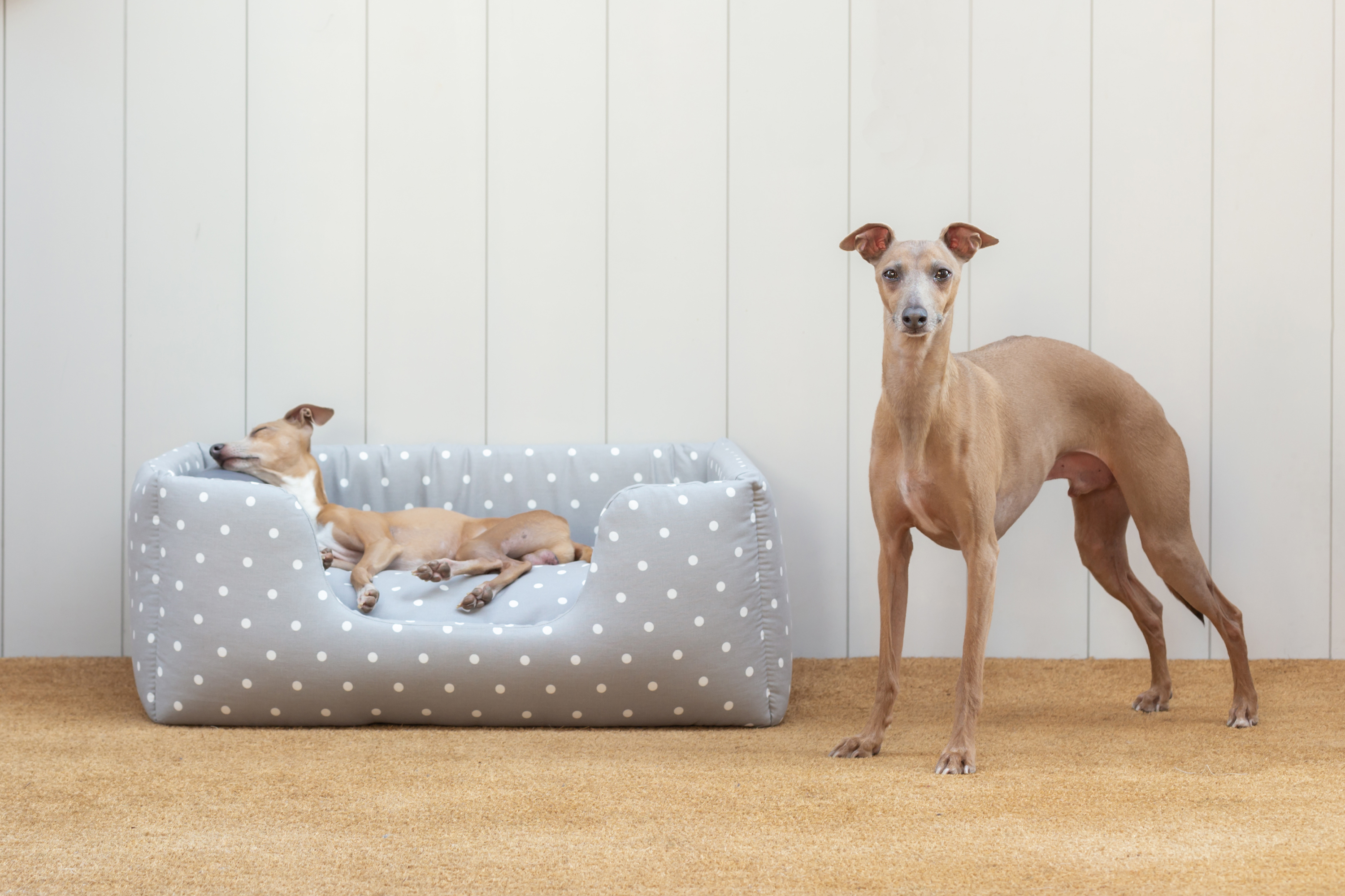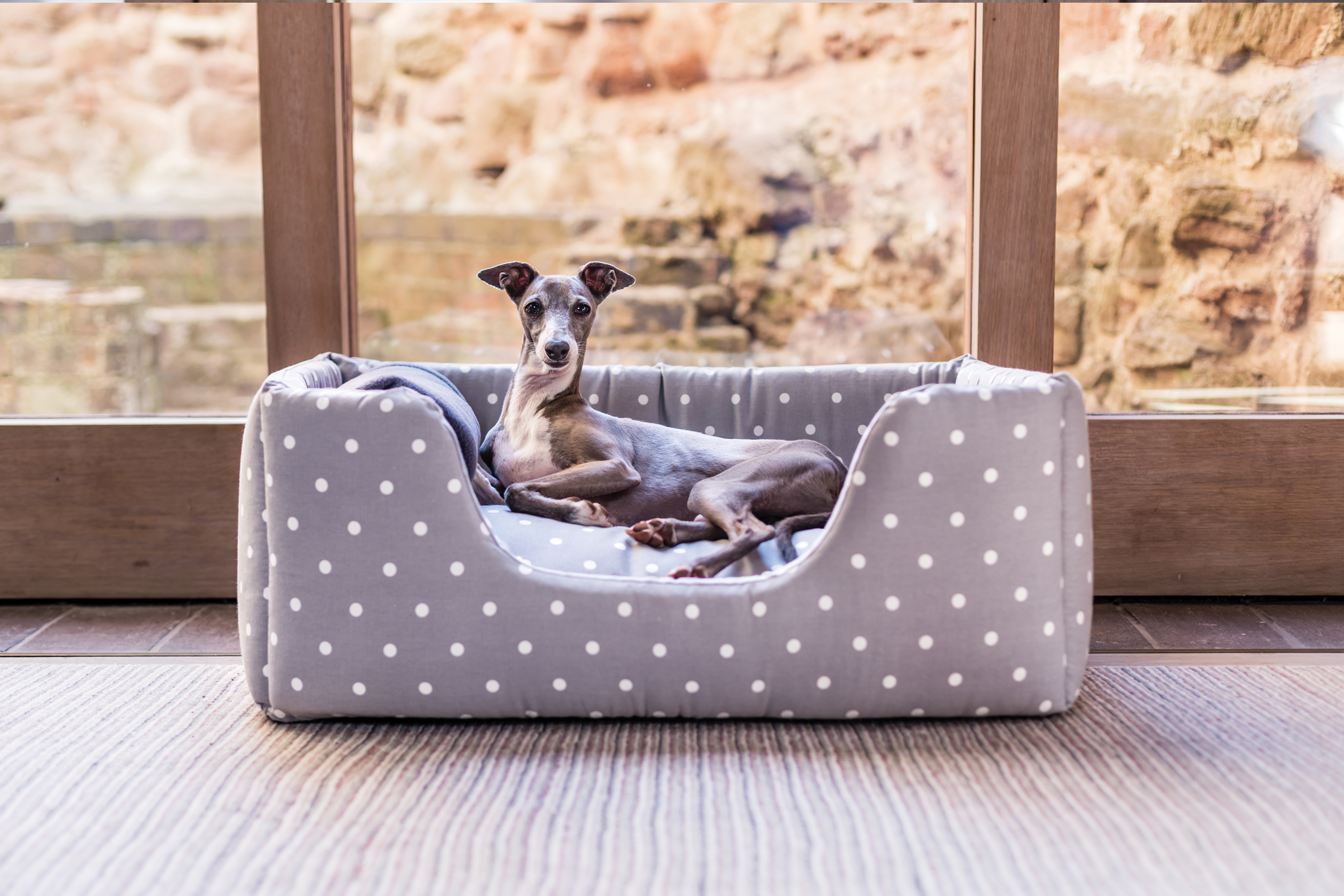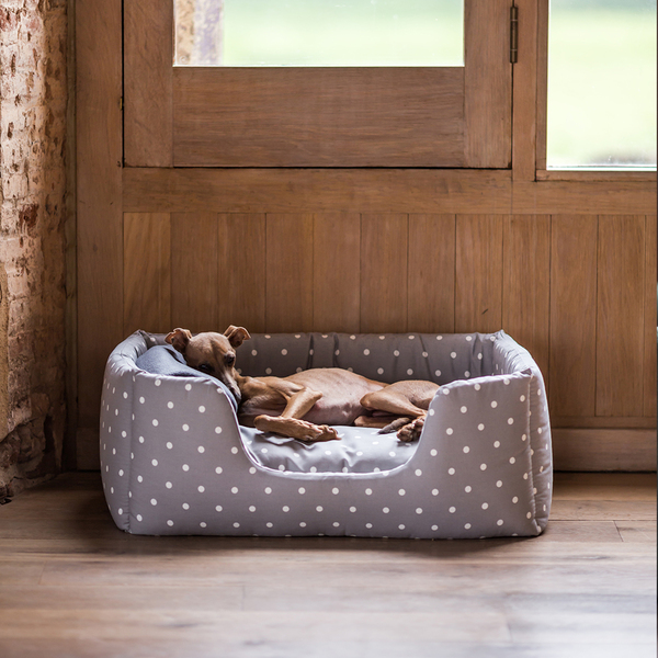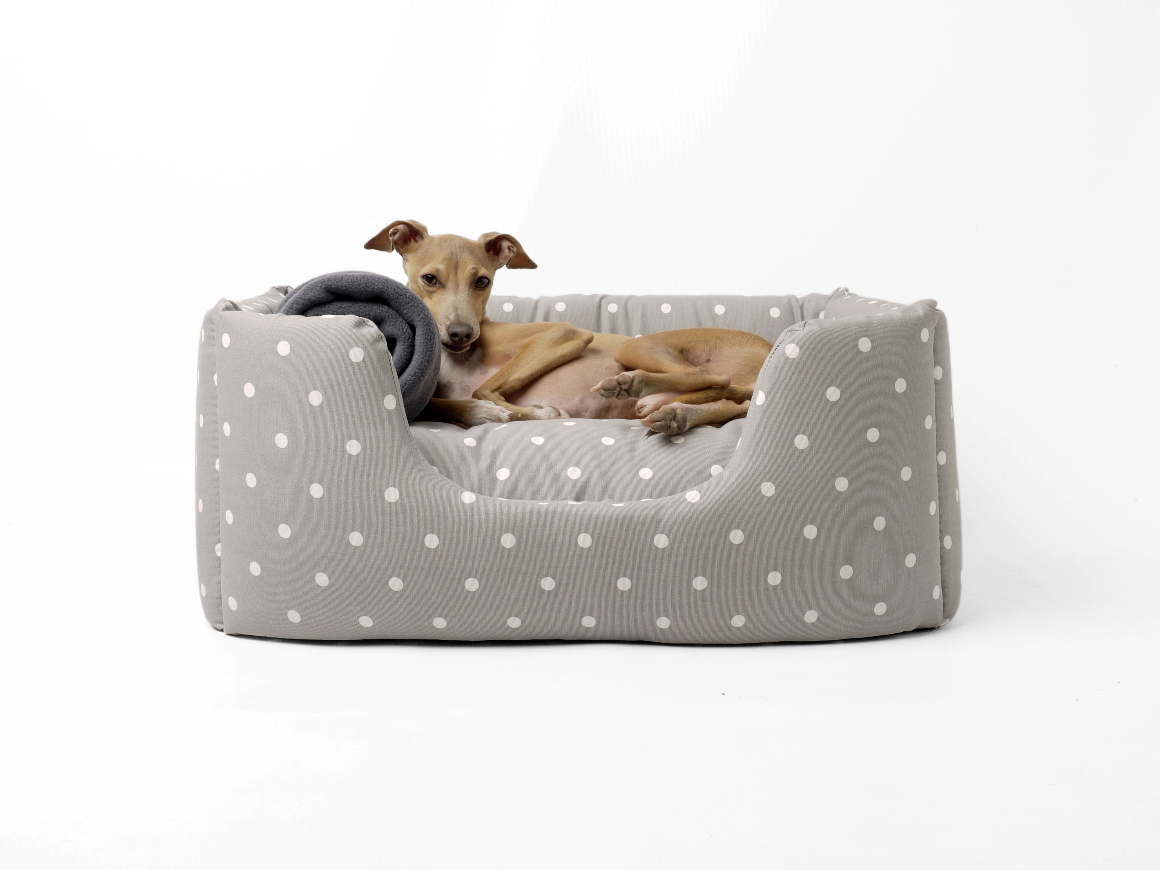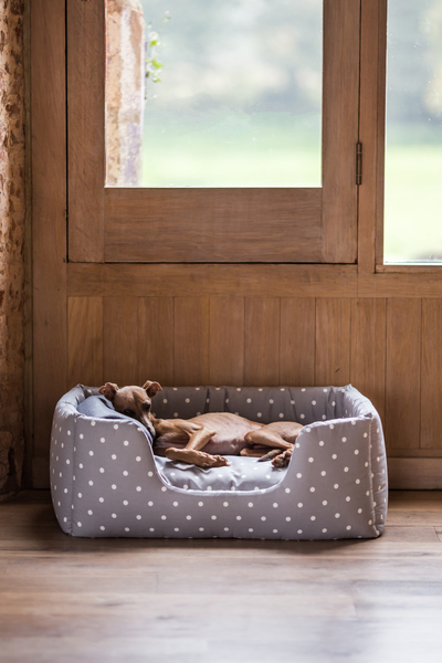 Charley Chau Deeply Dishy Dog Bed in Dotty Grey Cotton