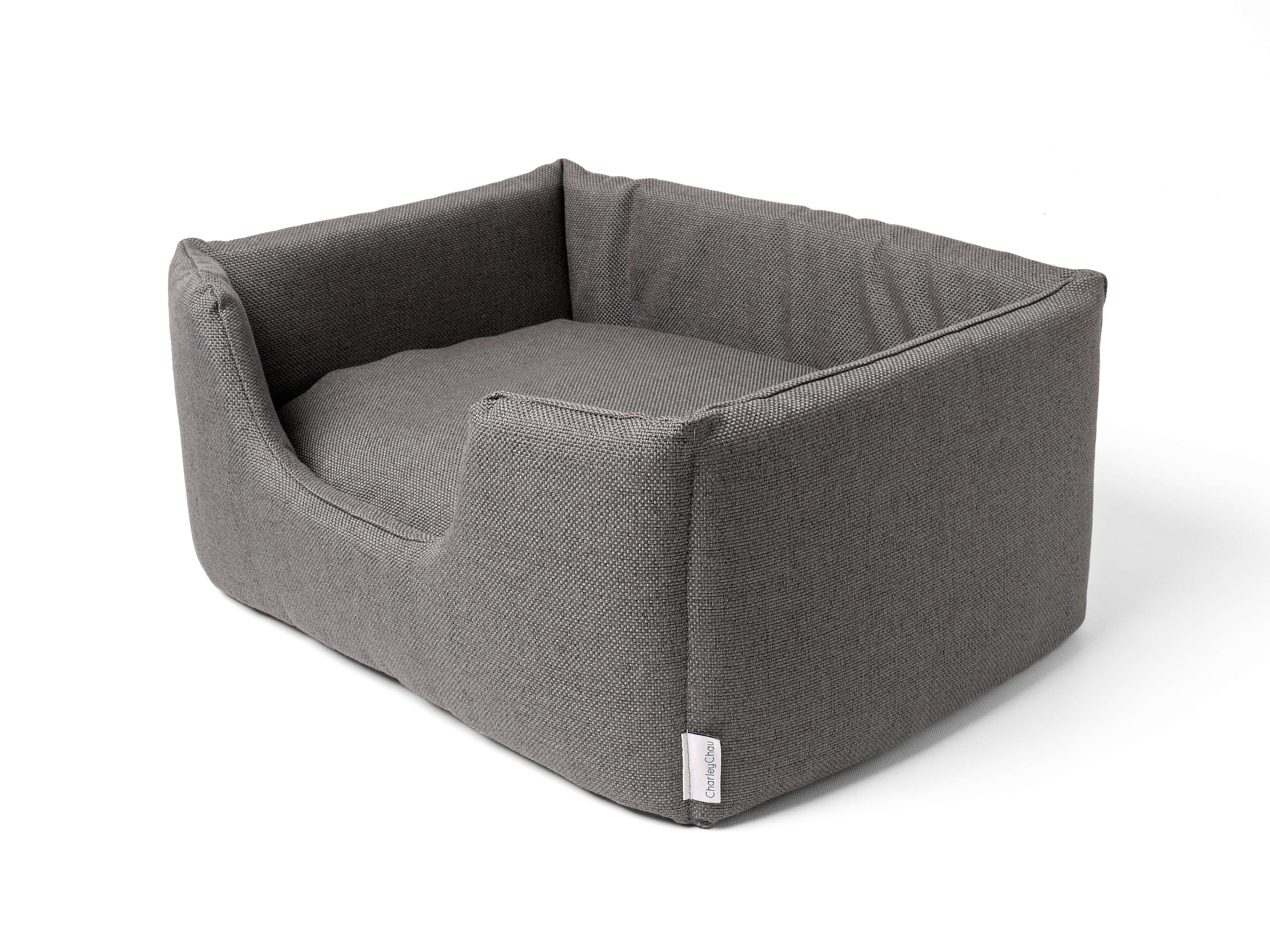 The Charley Chau Deeply Dishy Dog Bed in weave is not only super-comfy, it's super-stylish too. Weave is a beautiful upholstery grade fabric which is soft and fluid to touch but robust enough to cover human armchairs and sofas. The Deeply Dishy Dog Bed has deep cosy sides and a deep-filled luxury mattress to give the bed a cosy, den-like feel. It features a classic Day Bed Mattress as a base, deep-filled with insulating hollowfibre and constructed with internal wall panels to stop the fibre filling from moving around so that your dog won’t ever have to put up with unwelcome lumps and bumps. All covers are removable and the entire bed is fully machine washable. Available in three shades - Linen, Slate (as shown) and Pewter is sizes Small and Large.