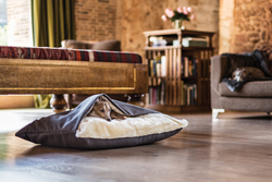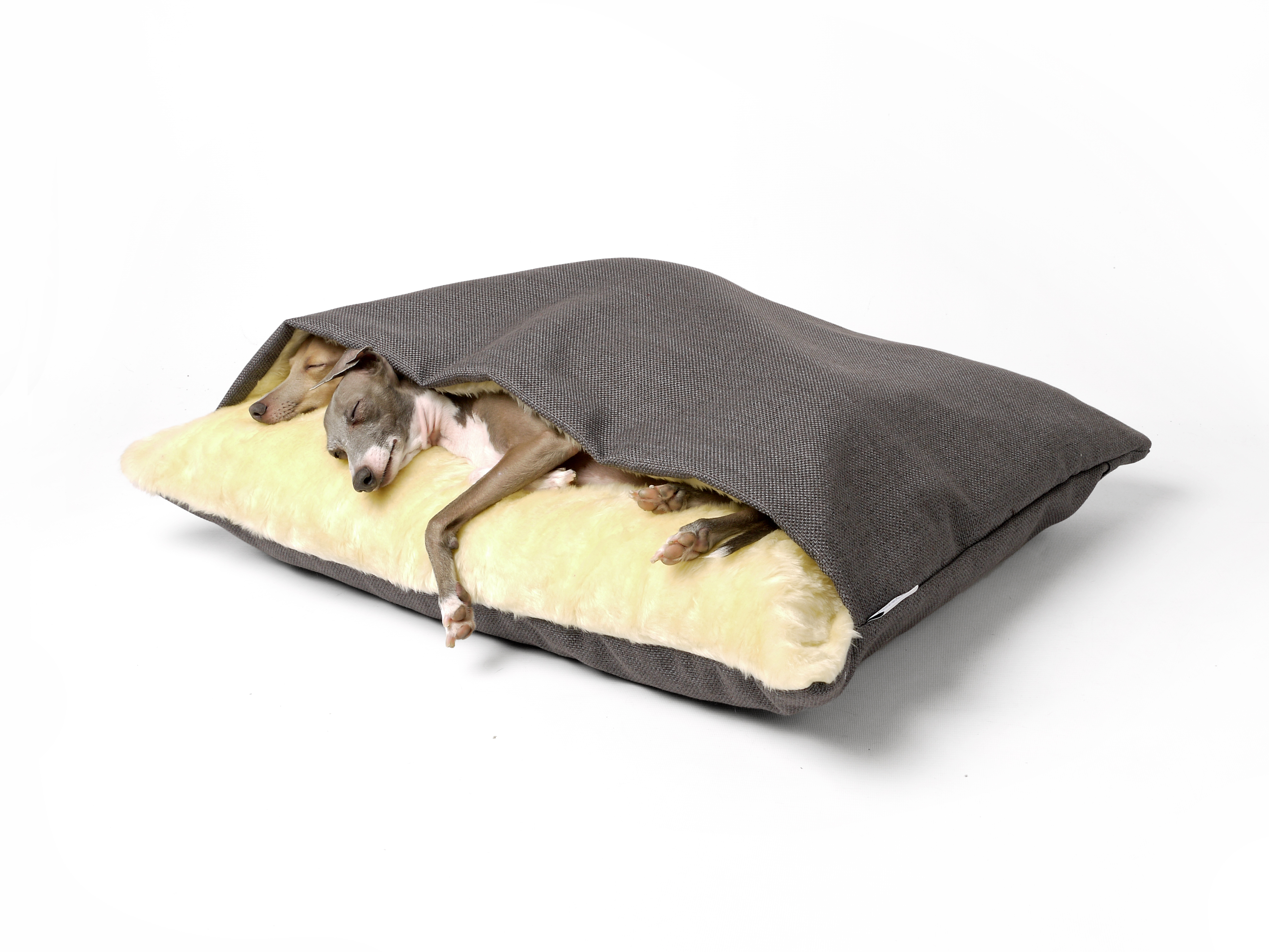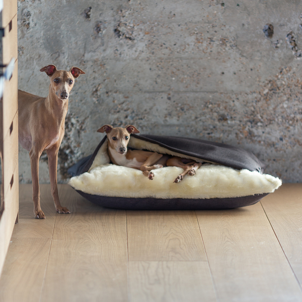 Charley Chau Snuggle Beds are perfect for any dog that loves to tunnel and sleep under blankets, with a cosy faux-fur fleece lined pocket that your dog can climb into to keep snug and warm even when you’re not home to tuck them in! Finished in an upholstery fabric in Weave - super-cosy and super-stylish too! Charley Chau Snuggle Beds are a particularly brilliant bed for Terriers, Hounds and Sighthounds. Terriers and Hounds have a natural instinct to tunnel or burrow (for example Jack Russell Terriers and Dachshunds that were bred to go to ground), and short-coated Sighthounds are creatures of comfort that instinctively look for the softest and warmest place in the house to sleep! Fully removable outer cover and machine washable everything. Available in three sizes - Small, Medium and Large, in three colourways - Slate (as shown), Linen and Pewter.