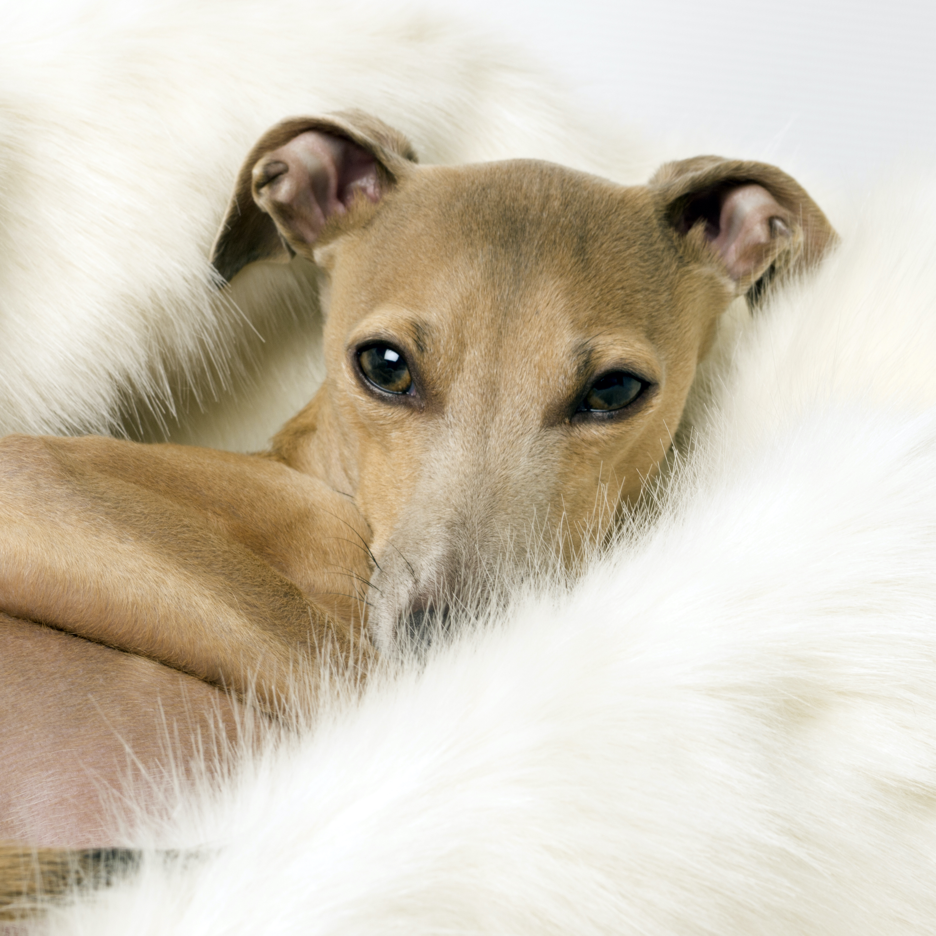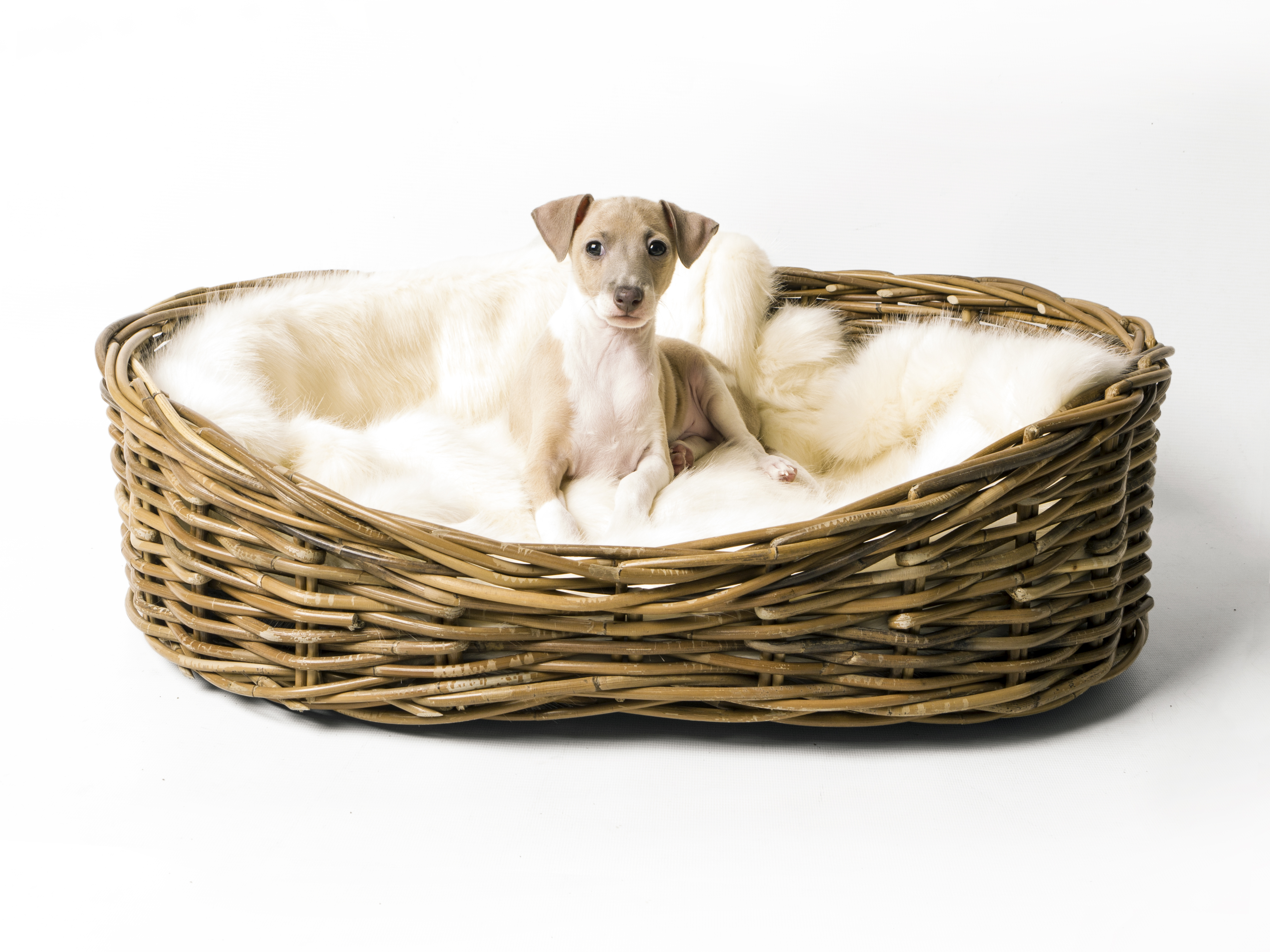Snowy white Polar Bear is a fabulous statement piece for the home, and one that a dog will love. Backed with Charley Chau's super-soft anti-pil fleece in Oyster, Polar Bear is indescribably soft, fluffy and just gorgeous to snuggle into. Perfect to luxe-up an existing dog bed or to drape on the sofa - dog blankets really can be gorgeous and practical!. Charley Chau's Polar Bear Faux-Fur Blanket is machine washable and comes in two sizes - Medium approx. 100 x 65cm and Large approx. 140 x 100cm.