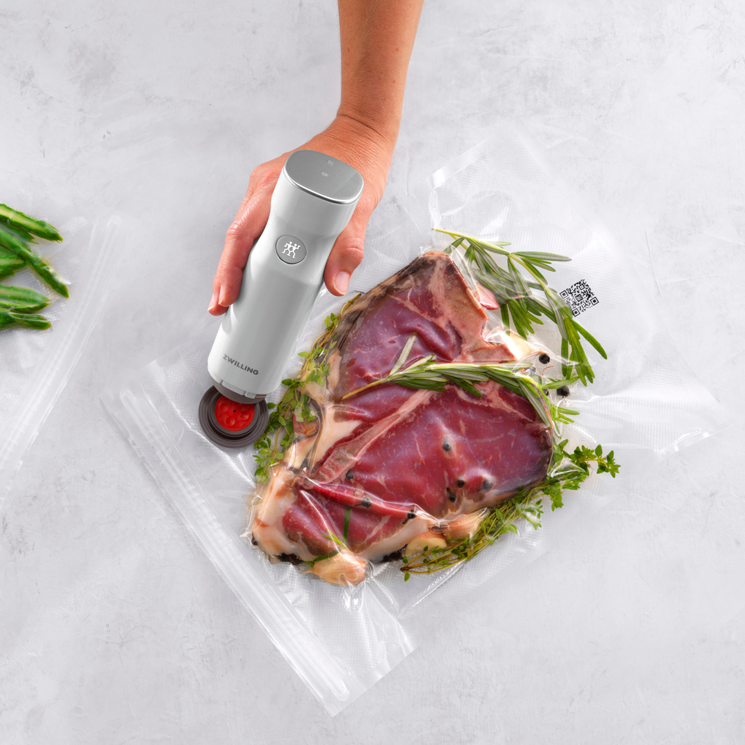 The FRESH & SAVE BPA-free vacuum bags help to keep your ingredients fresher for longer - simply seal with the vacuum pump (sold separately) to keep flavours fresh. Scan the QR code to store your prep in the app and get alerts so you don't miss the use-by date.