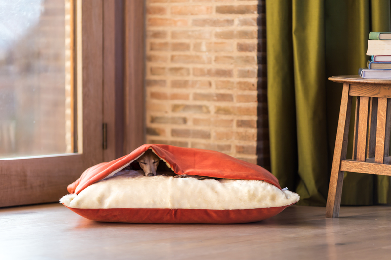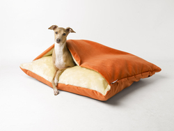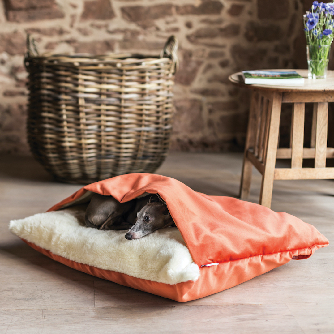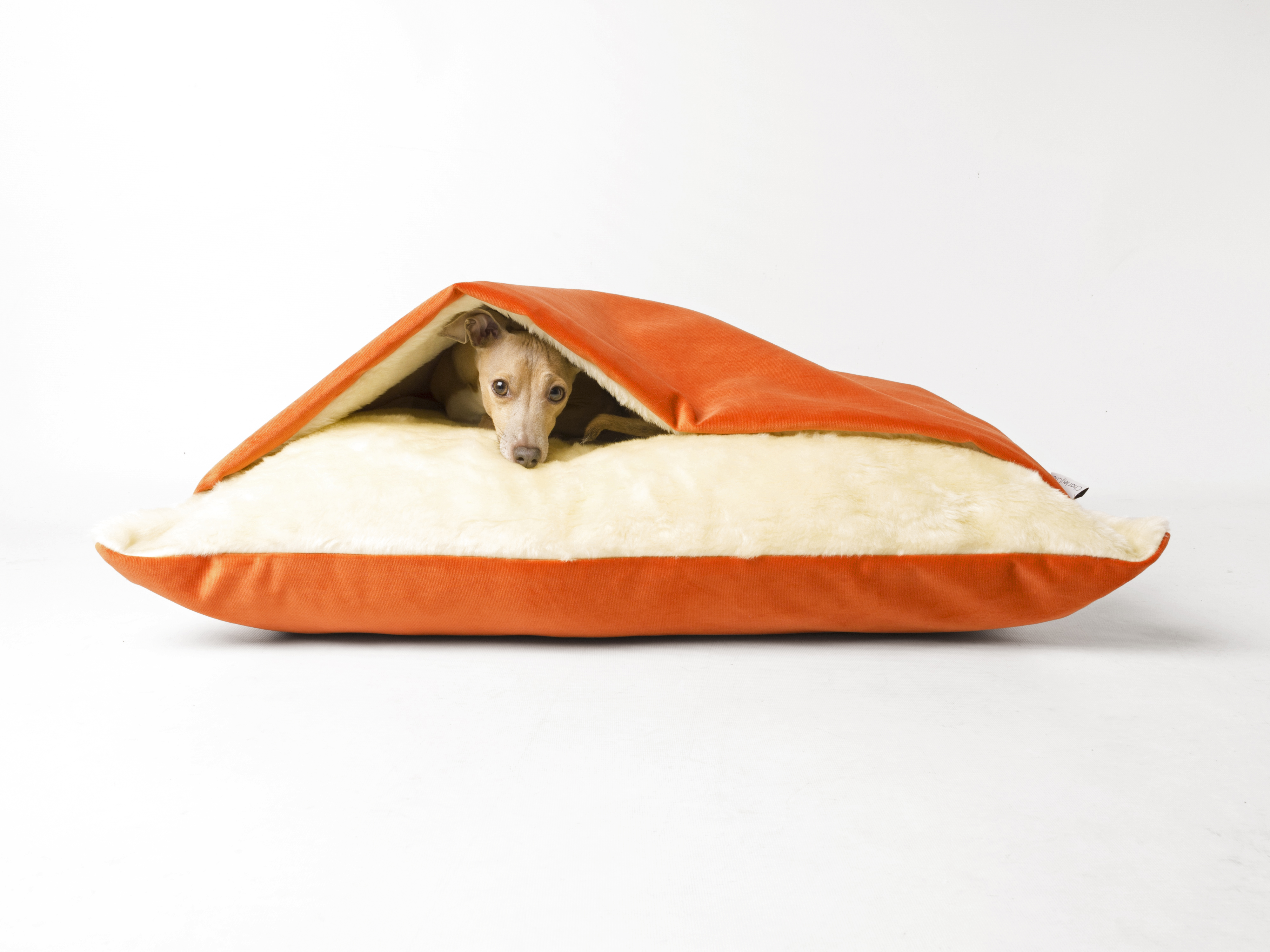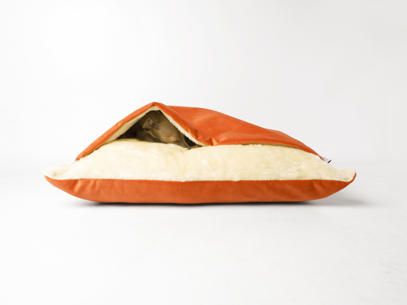 Charley Chau's signature Snuggle Beds in a gorgeous upholstery quality Velour in a range of striking colours and a gorgeous grey neutral. Velvety-soft and lush to touch, this Velour fabric looks super-smart and is an upholstery quality fabric so it performs brilliantly over time too! Charley Chau Snuggle Beds are perfect for all dogs that love to snuggle under blankets, particularly Terriers, Hounds and Sighthounds. Terriers and Hounds have a natural instinct to tunnel or burrow (for example Jack Russell Terriers and Dachshunds that were bred to go to ground), and short-coated Sighthounds are creatures of comfort that instinctively look for the softest and warmest place in the house to sleep. Fully removable outer cover and machine washable everything. It comes in sizes Small, Medium and Large in a choice of colourways.