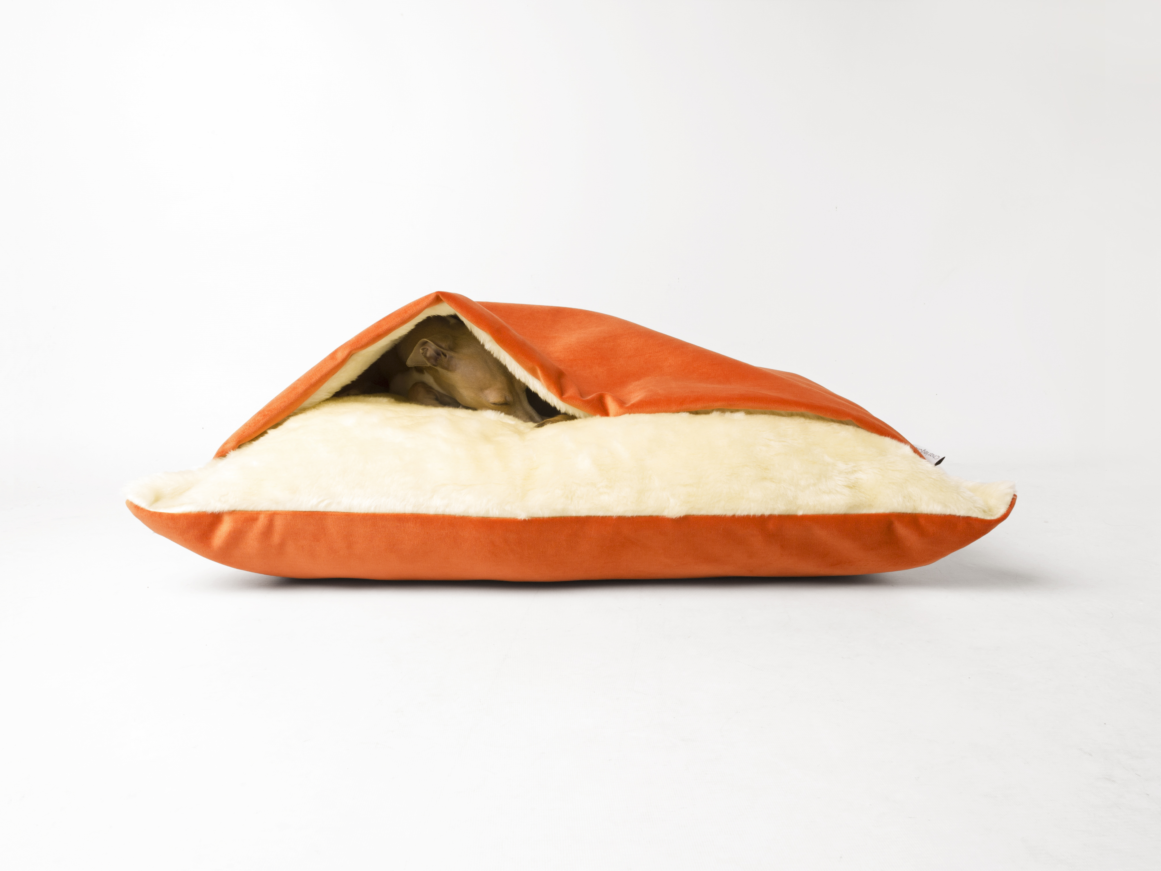 Charley Chau Dog Snuggle Bed in Tangerine Velour