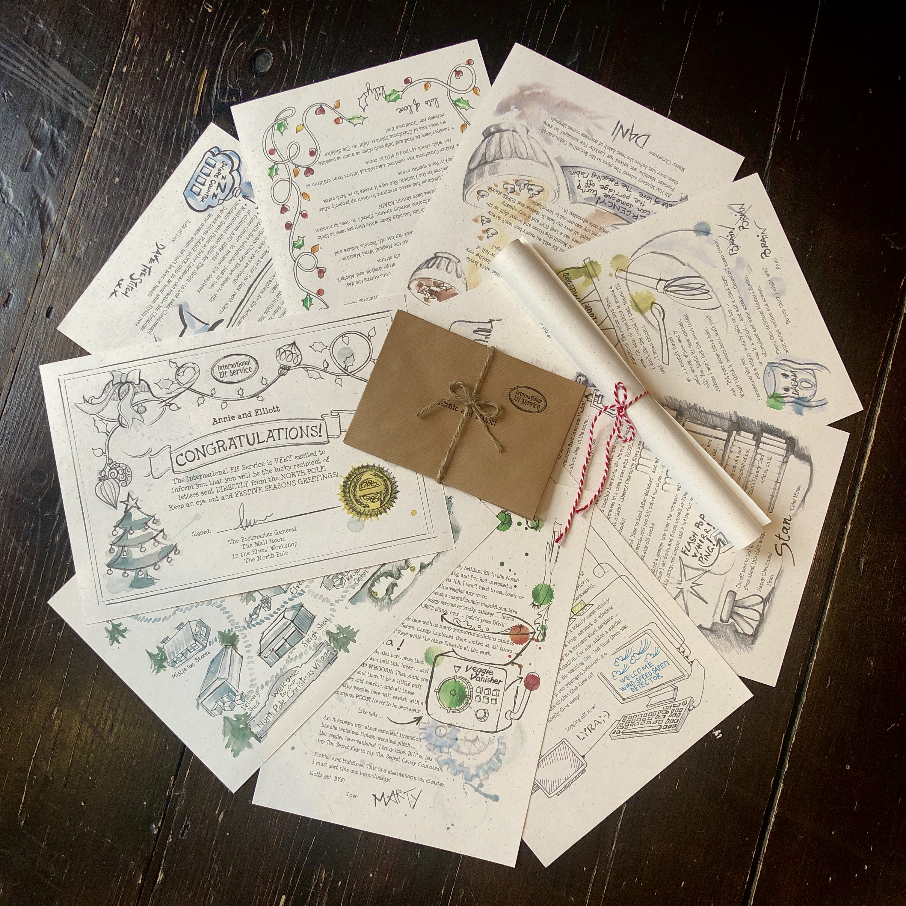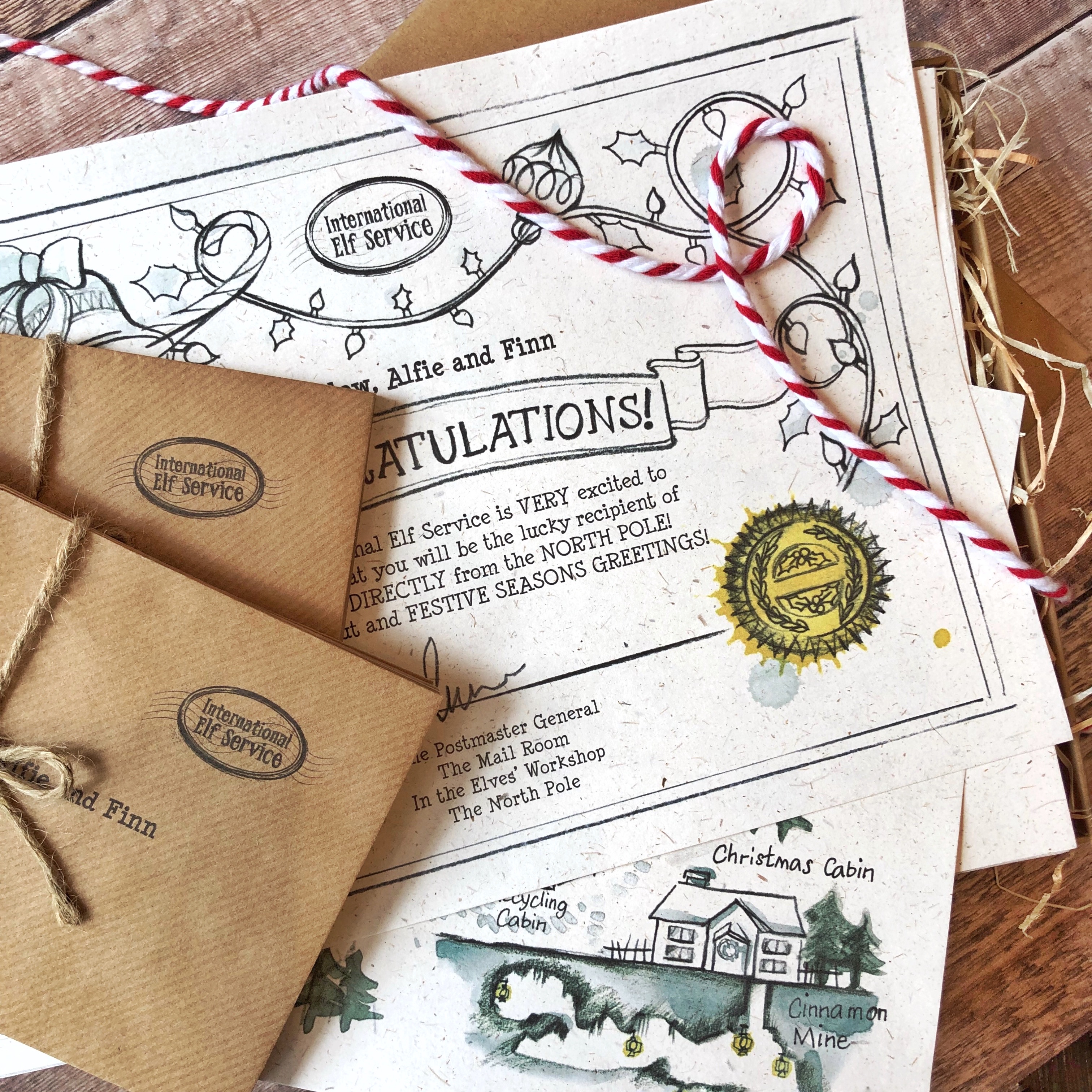 7 handcrafted, personalised, eco-friendly and handcrafted Christmas Elf Letters from the North Pole, sparkling with magic & festive things to do. Perfect for 3-5 year olds. Bursting with brand new Christmassy Activities to do each year, these letters are full of rainy day activities to enjoy doing together. This bundle also includes our unique Personalised Family Christmas Memory Box - the perfect gift for the whole family to discover under the Christmas Tree on Christmas morning. Available to personalise for one child or addressed to all the children in your family, this pack also includes an Official Certificate and a Map of the North Pole (plus personalised envelopes if required), bringing a huge dollop of Christmas Magic into your home. This magical Family Christmas Tradition encourages children to enjoy reading, promotes one to one time and helps to preserve Christmas Magic. Pop a Christmas Elf Letter by their toothbrush, in their shoes, on the door mat, or in their school bags. These truly magical Christmas Elf letters help create the most special of festive family traditions, and make a wonderful keepsake for you and your children to treasure. Suitable for 3-5 yrs: this bundle goes very well with our Christmas Night Letter Bundle https://internationalelfservice.com/shop/product/christmas-elf-letters-activity-bundle-plus-christmas-memory-box/