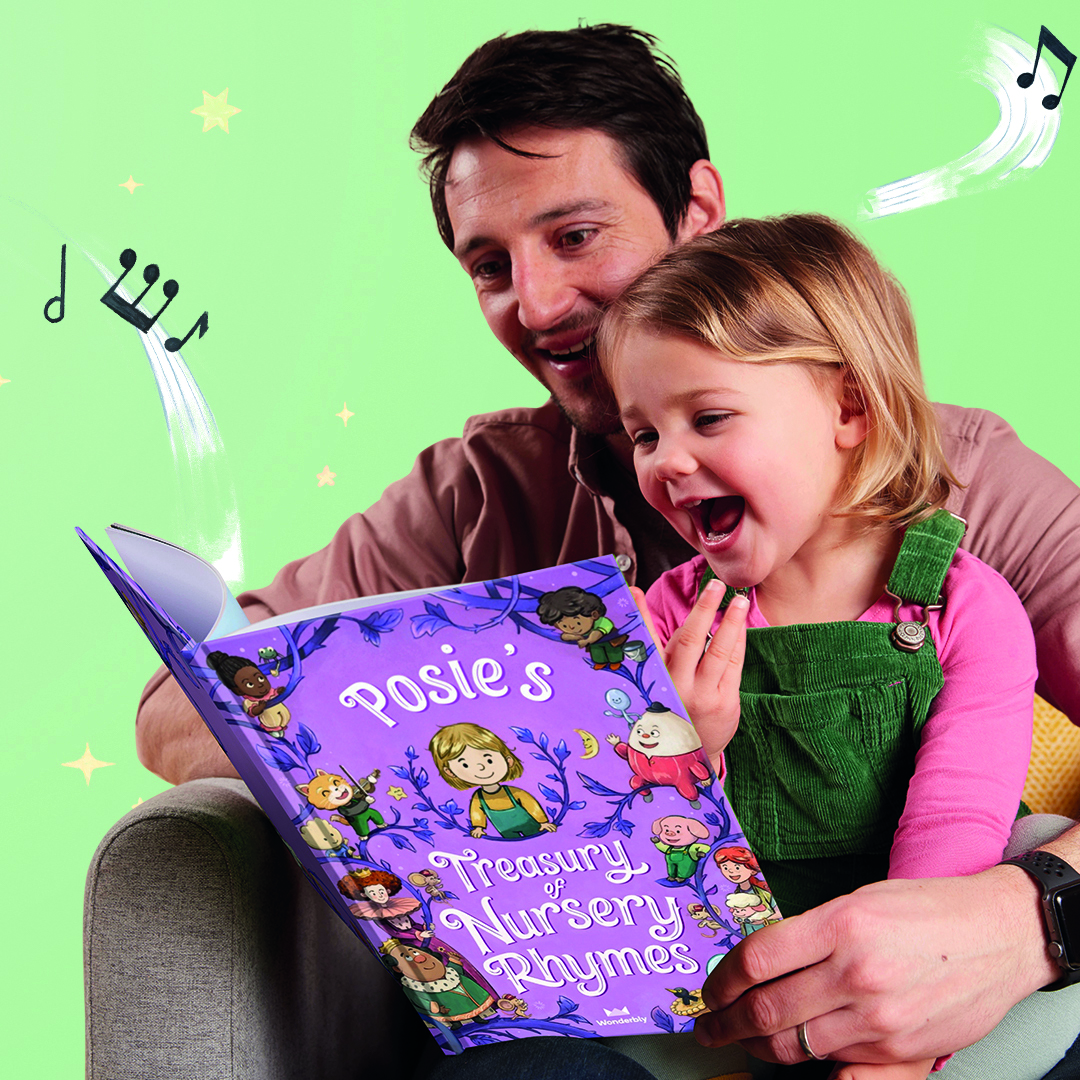 Traditional nursery rhymes... with a twist! Transform a child into the hero of over 30 classic songs and stories in this charming personalised keepsake book. Filled with family favourites, children will love spotting themselves in their nursery rhyme book, sharing a snack with Little Miss Muffet and helping put Humpty Dumpty back together again! This timeless collection is the perfect way to bring children and their grown ups together for a sing-a-long storytime, night after night.