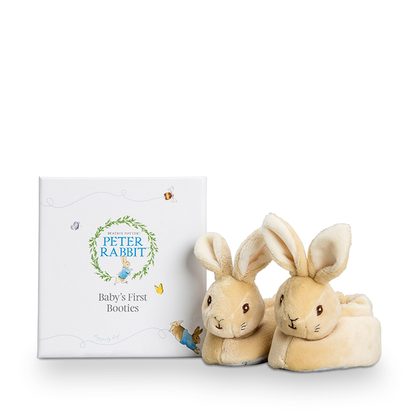From the much-loved Beatrix Potter, comes this adorable Peter Rabbit First Booties Set (fitting for 0-6 months). Thanks to their plush Flopsy Bunny decoration and rattle in each toe, the baby will be comforted and content for hours. Every pair of these soft booties comes in a beautiful gift box, making them the perfect present. Age: 0-6 months - https://www.moonpig.com/uk/gifts/p/peter-rabbit-my-first-booties/kid75/