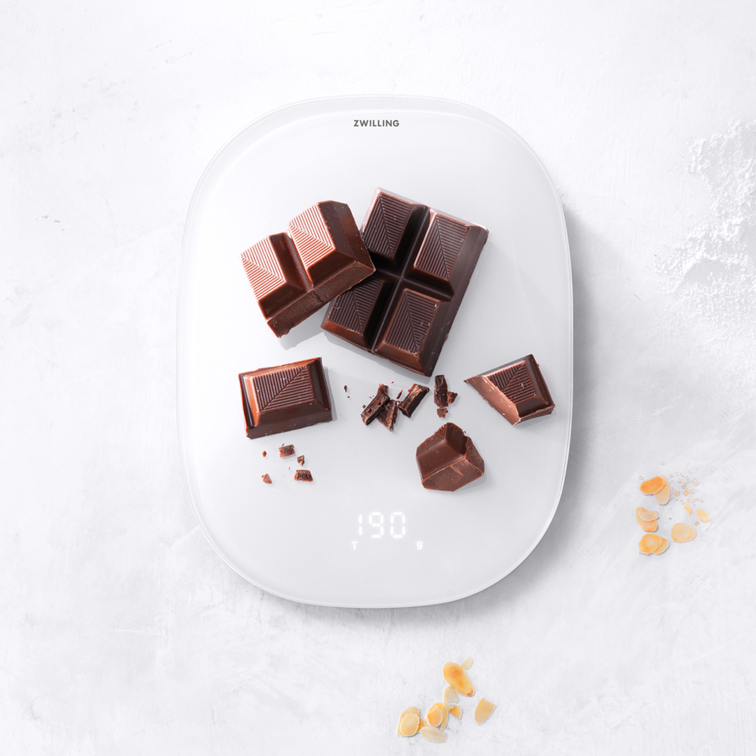 - Digital kitchen scales with integrated Li-ion battery, rechargeable via USB cable