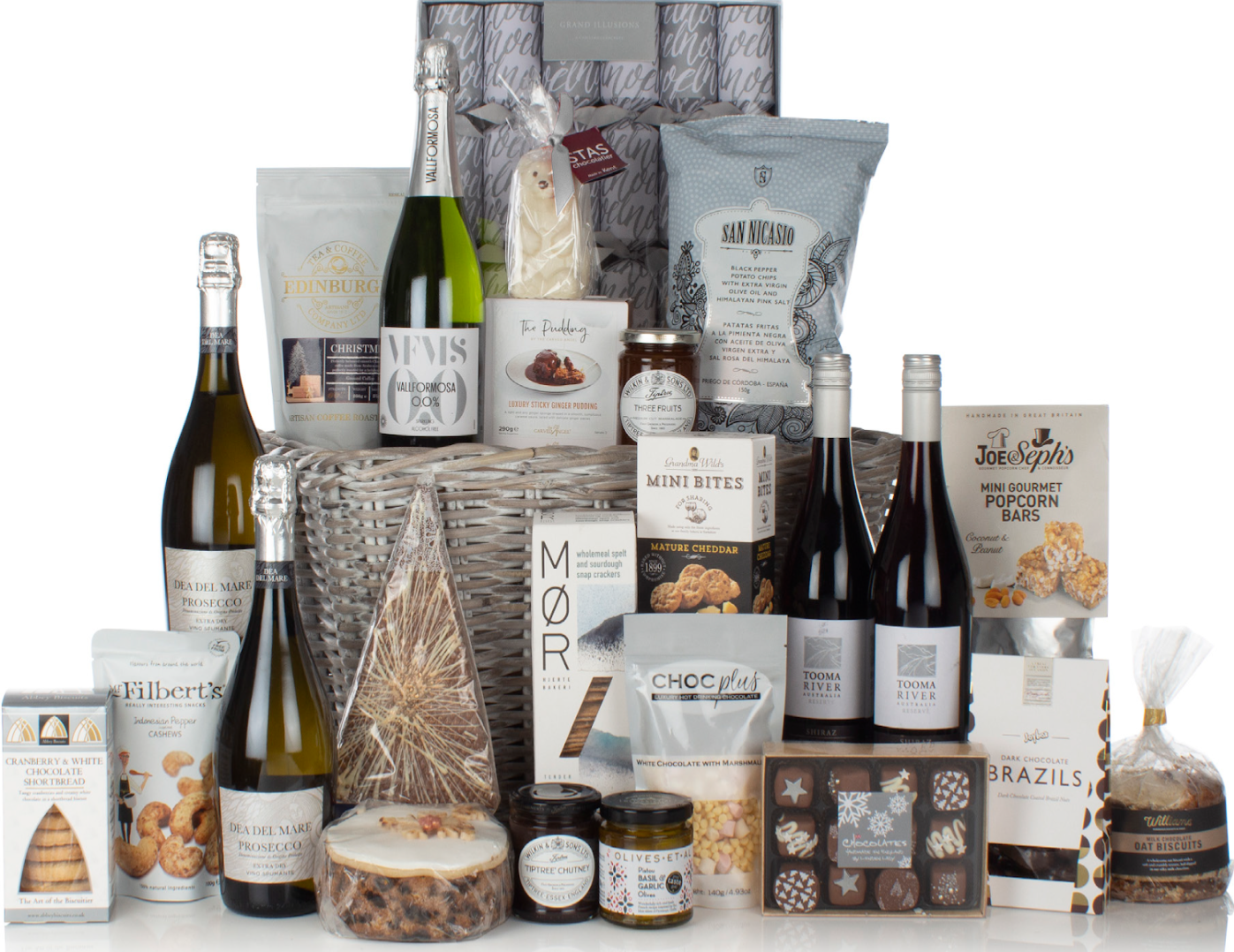 Striking, elegant and certainly not failing in the ‘wow’ factor this beautiful Christmas hamper is guaranteed to make a lasting impression. This includes: Mature Cheddar Mini Bites, Choc Plus luxury hot chocolate with marshmallows, Mor wholemeal spelt & sourdough snap crackers, Dea Del Mare Prosecco, Tooma River Shiraz, and more!