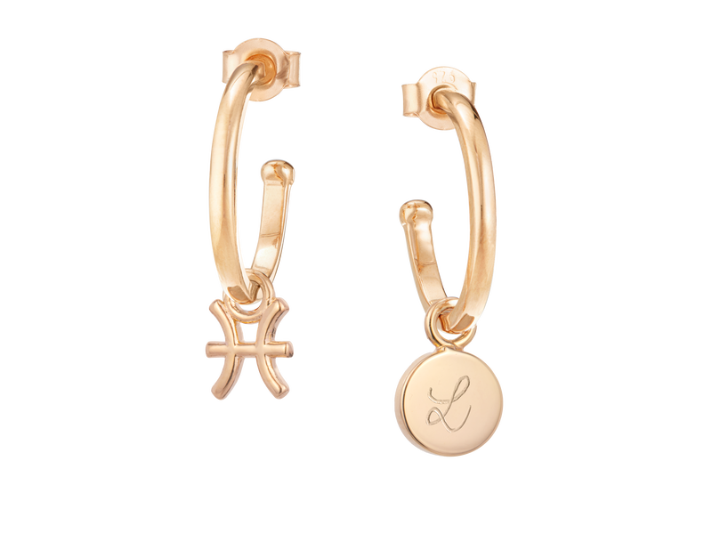 Our Zodiac Hoop Earrings pair a hand-engraved charm with a unique zodiac charm, creating a personalised engraved gift with the star sign of a loved one or your very own.
