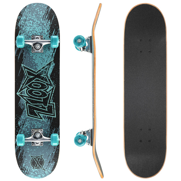 The Xootz Streak Double Kick Skateboard is a great introduction into the world of skating. Ideal for beginner or amateur skaters, this 31” skateboard is a great platform to learn on and practice stunts and tricks. Made from tough 9 ply maple deck with strong black grip tape, it is reliable for a trick heavy performance. It benefits from lightweight 5” aluminium trucks, 608Z bearings, 6mm PE risers and 54 x 36mm PVC wheels to offer a controllable, smooth and fun riding experience. Featuring a unique contemporary design, colour-coordinated wheels, these skateboards are ready for kids to show off their tricks down at the skatepark. Recommended age: 3+. On sale: End of August