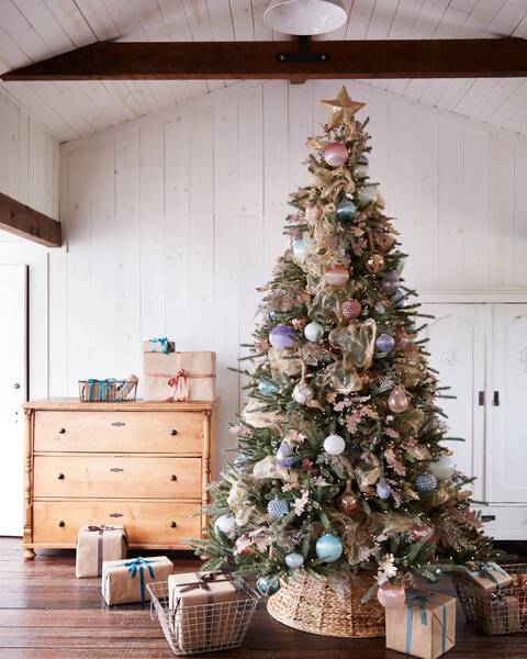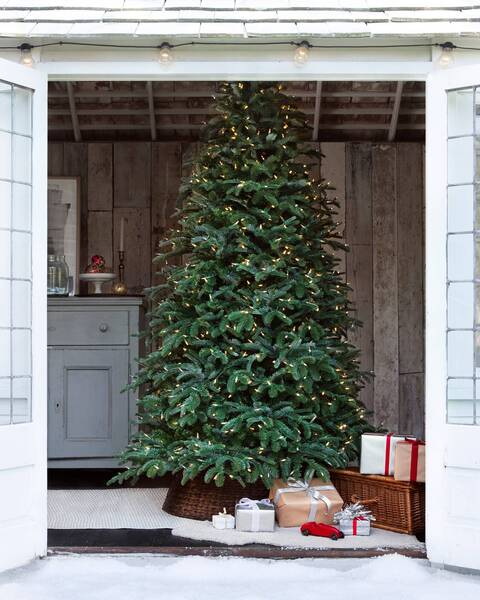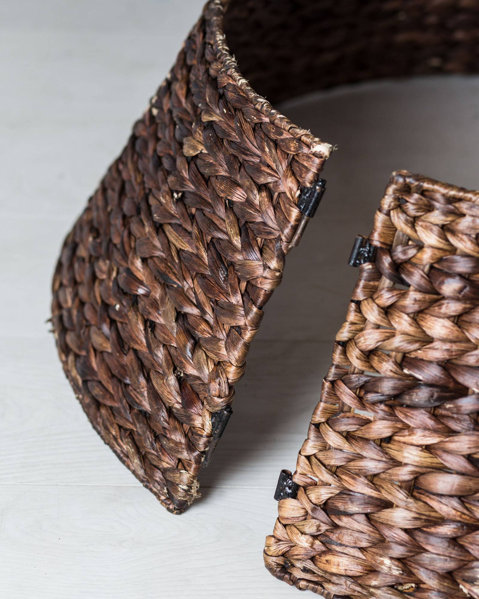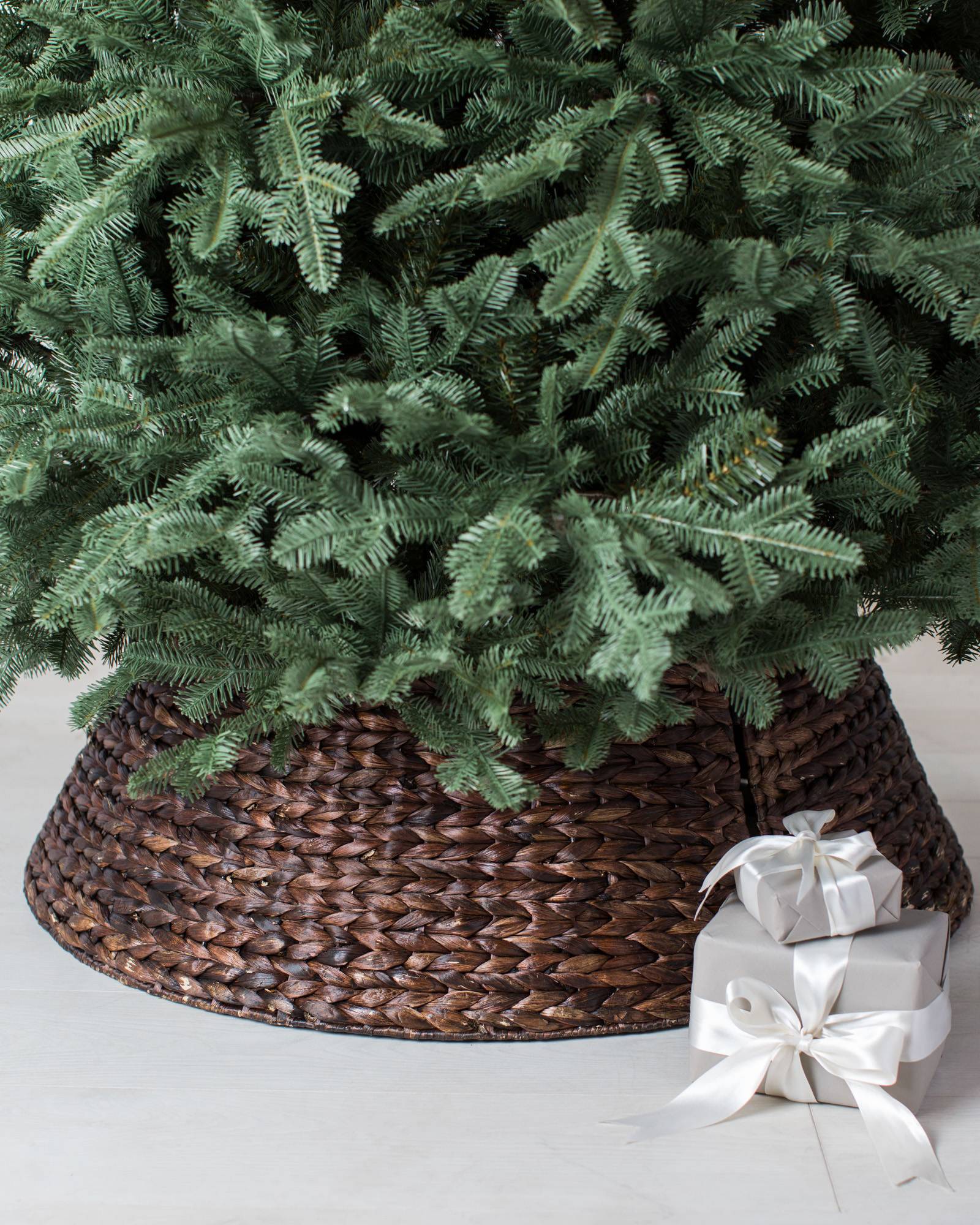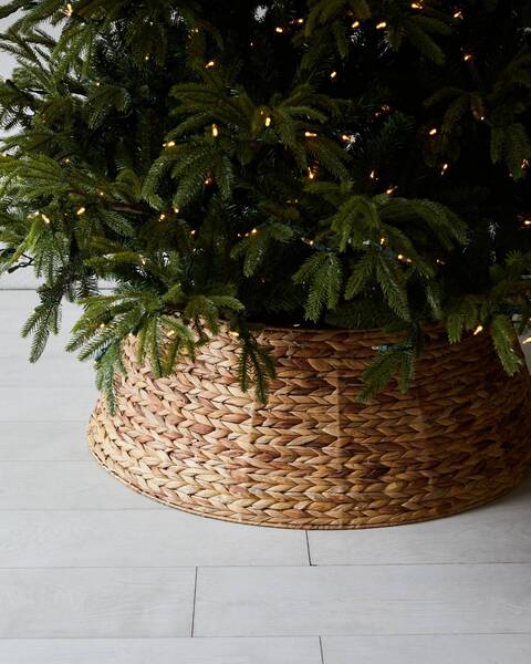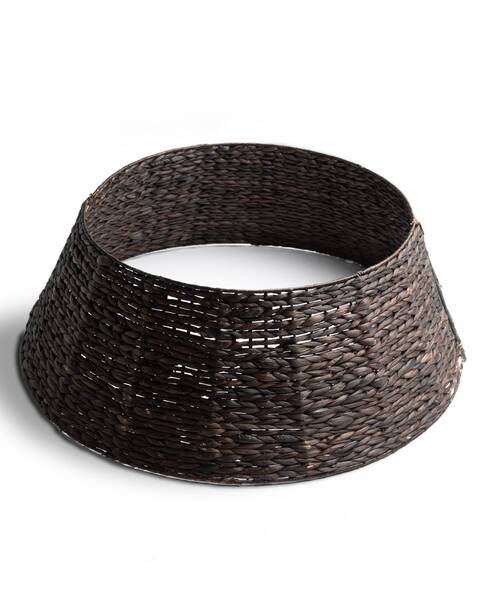 This tree collar is completely handwoven from cattail plant fibres, creating a rustic backdrop for presents under the tree. Featuring two detachable parts for easy set-up and storage, this Christmas tree collar works beautifully with traditional or countryside inspired decorating themes. -Made from handwoven cattail plant fibre - Offered in light or chestnut brown - Accommodates full-sized Balsam Hill Christmas trees and rolling stands up to 32" in diameter - For indoor use only