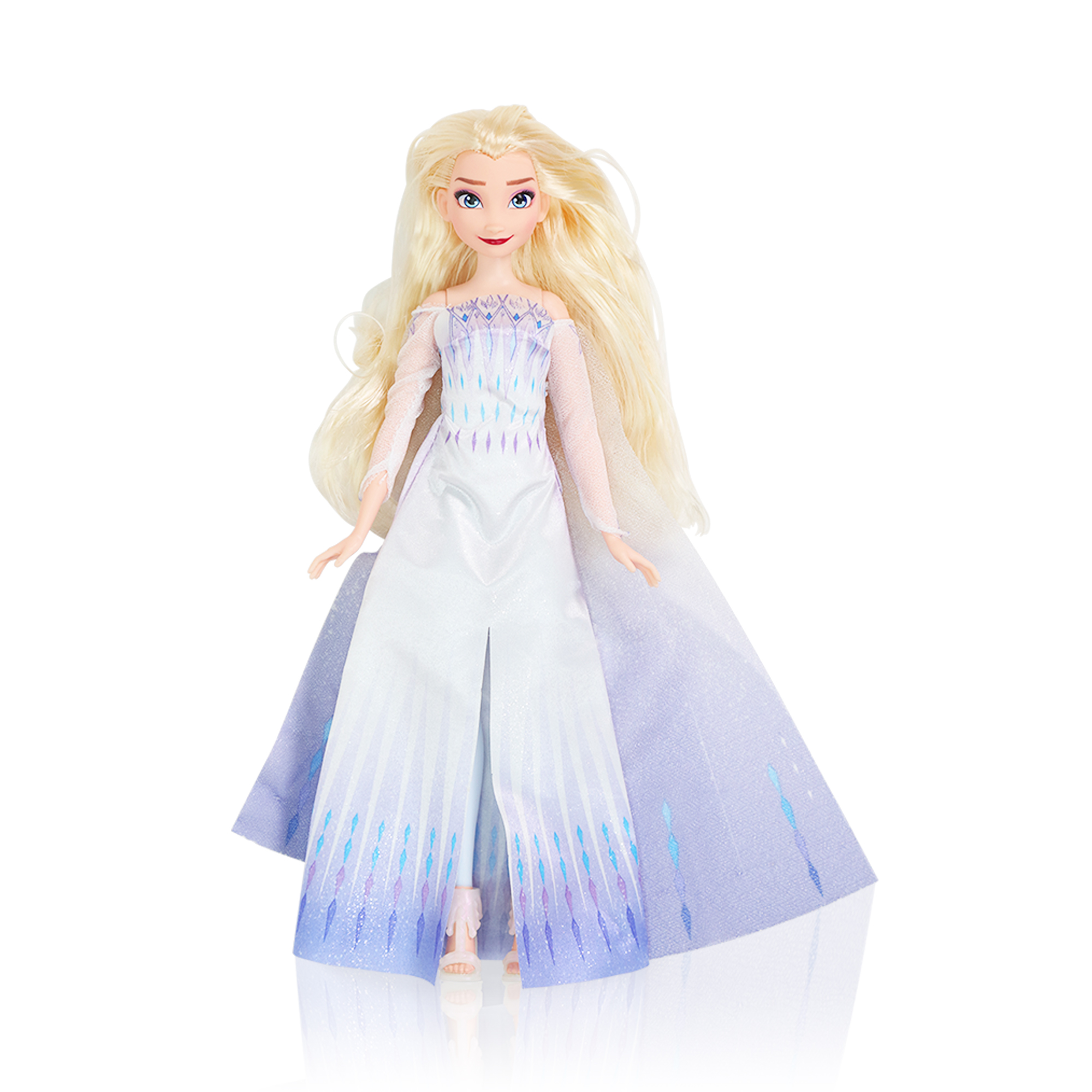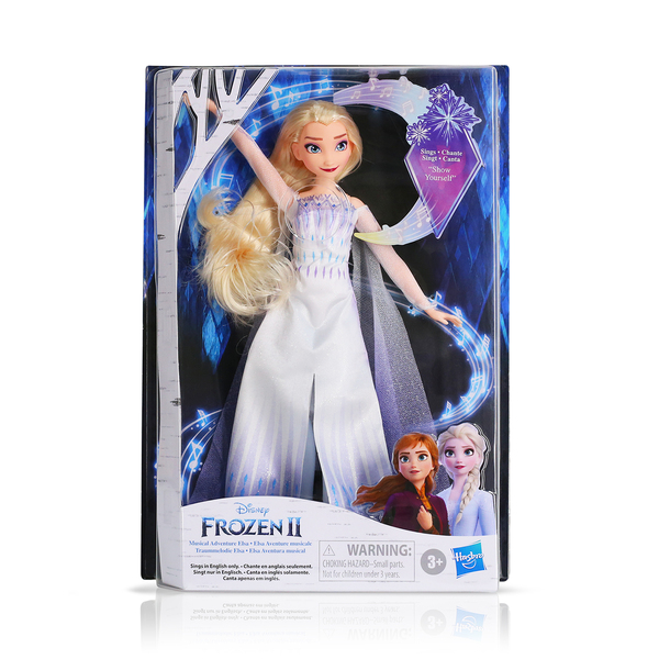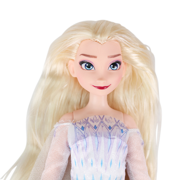 Into the unknooooooooown! Now your little ones can sing along with the Ice Queen herself, Elsa, as she belts out her show-stopping 'Show Yourself', a song featured in Disney's Frozen 2 movie. All they have to do is flick the switch on her back and press the button on her bodice to start the catchy tune. Batteries included!