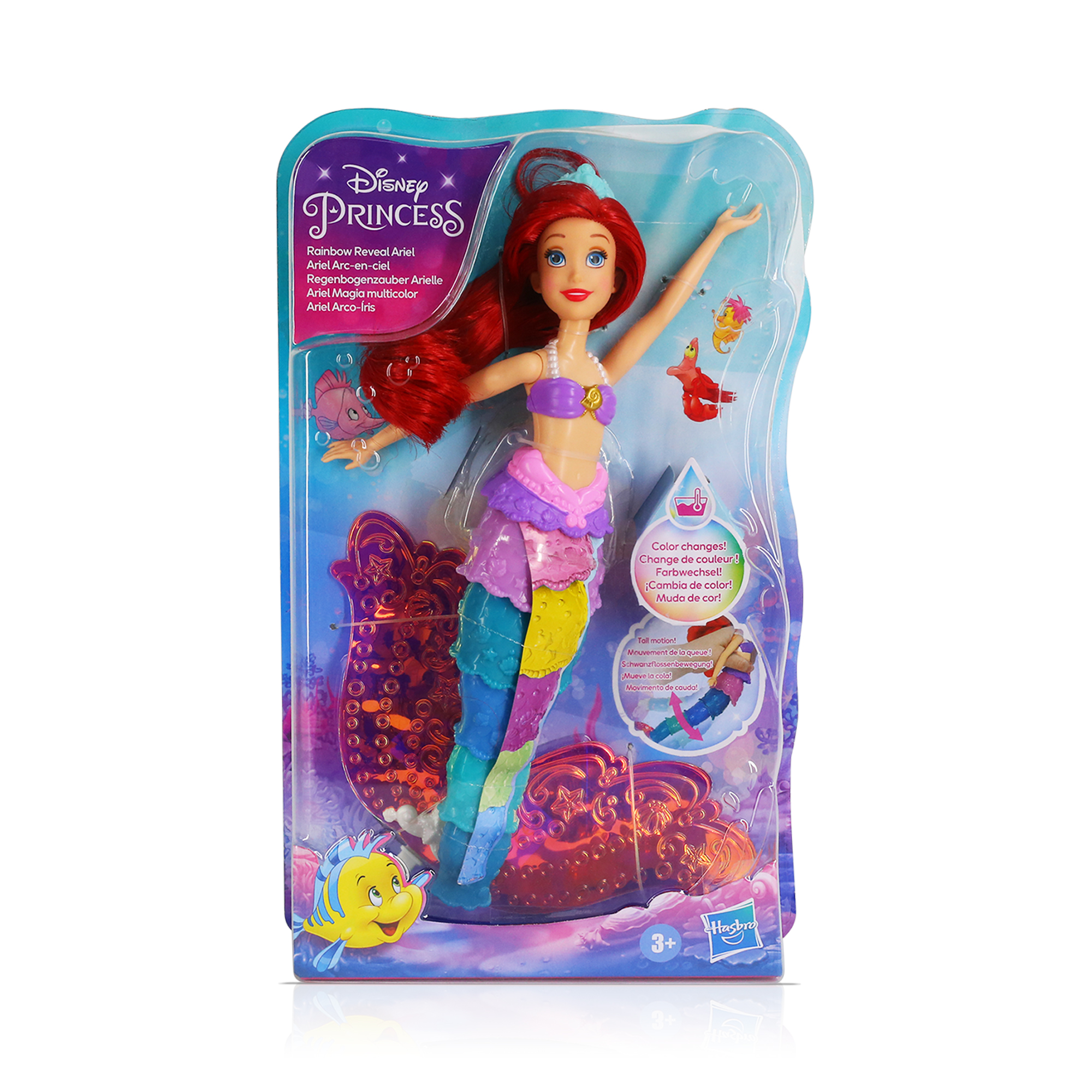 Under the sea! Explore a rainbow of colours underwater with Ariel, the magical mermaid Disney Princess. This Disney Little Mermaid Ariel Toy has a swimming motion and a magical colour-changing tail – when you put her in warm water, each section transforms into a rainbow of brighter colours. An enchanting toy for any child who loves The Little Mermaid. Includes: 1 x doll and 1 x brush